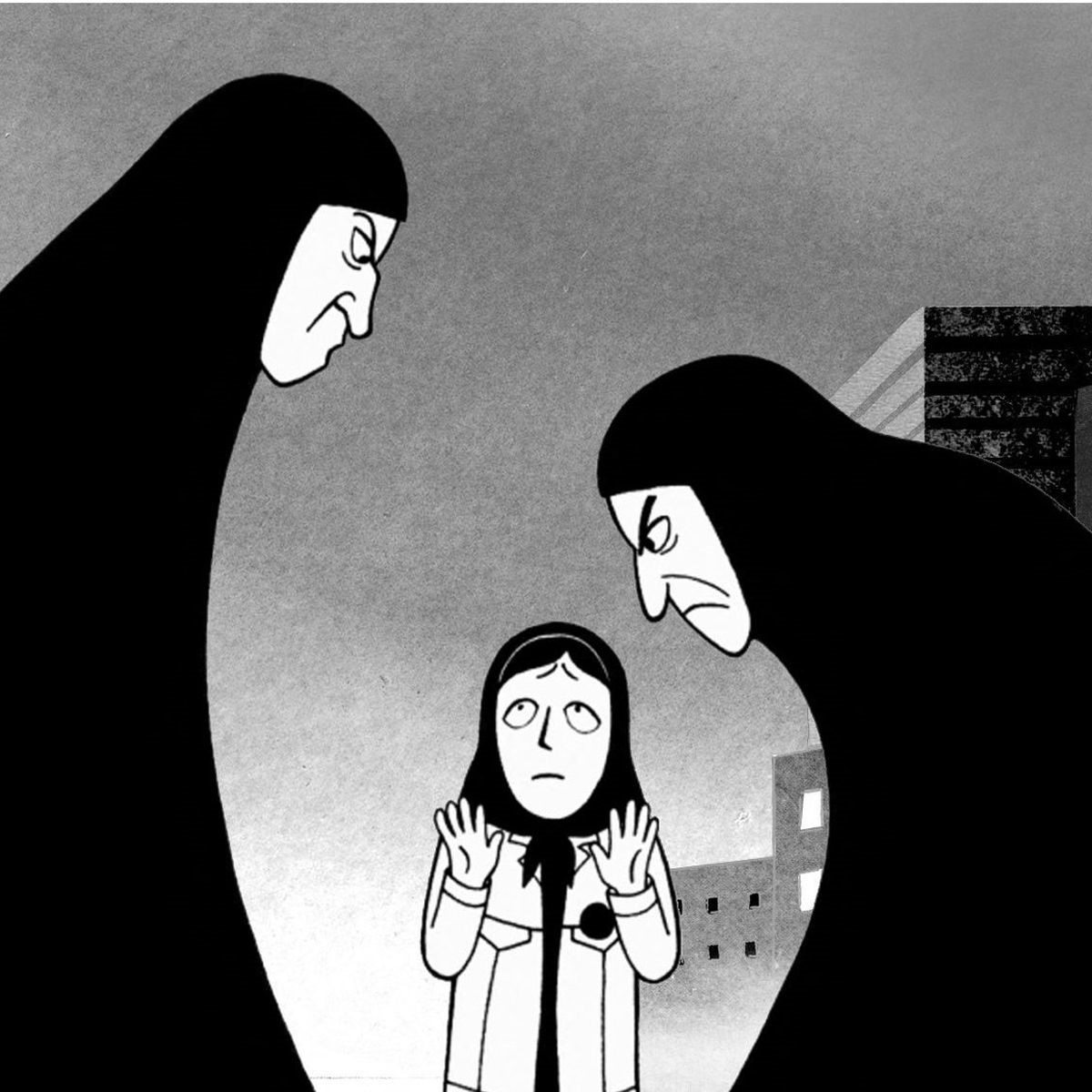 La pression sociale peut d’ailleurs provenir d’autres femmes voilées, comme le montre le film Persepolis, de Marjane Satrapi, réalisatrice née en Iran, où le port du voile islamique le plus strict s’est imposé à toutes les femmes lors de la révolution de 1979.